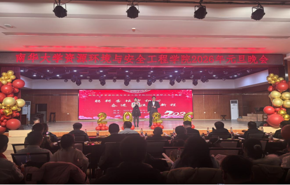 在2026年元旦佳节来临之际,2025年12月30日晚,南华大学资源环境与安全工程学院在红湘校区大学生活动中心成功举办以“躬耕杏坛守初心 奋进一流启新程”为主题的2026年教职工元旦晚会。