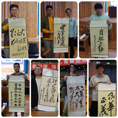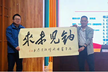 报告现场气氛热烈,同学们踊跃抢答。陈柒叁不仅为每位同学赠送了他亲笔书写的毛泽东诗词,还特意为学院题写“铀见未来”四字,寄托对学院育人事业与学子成长成才的美好祝愿。
